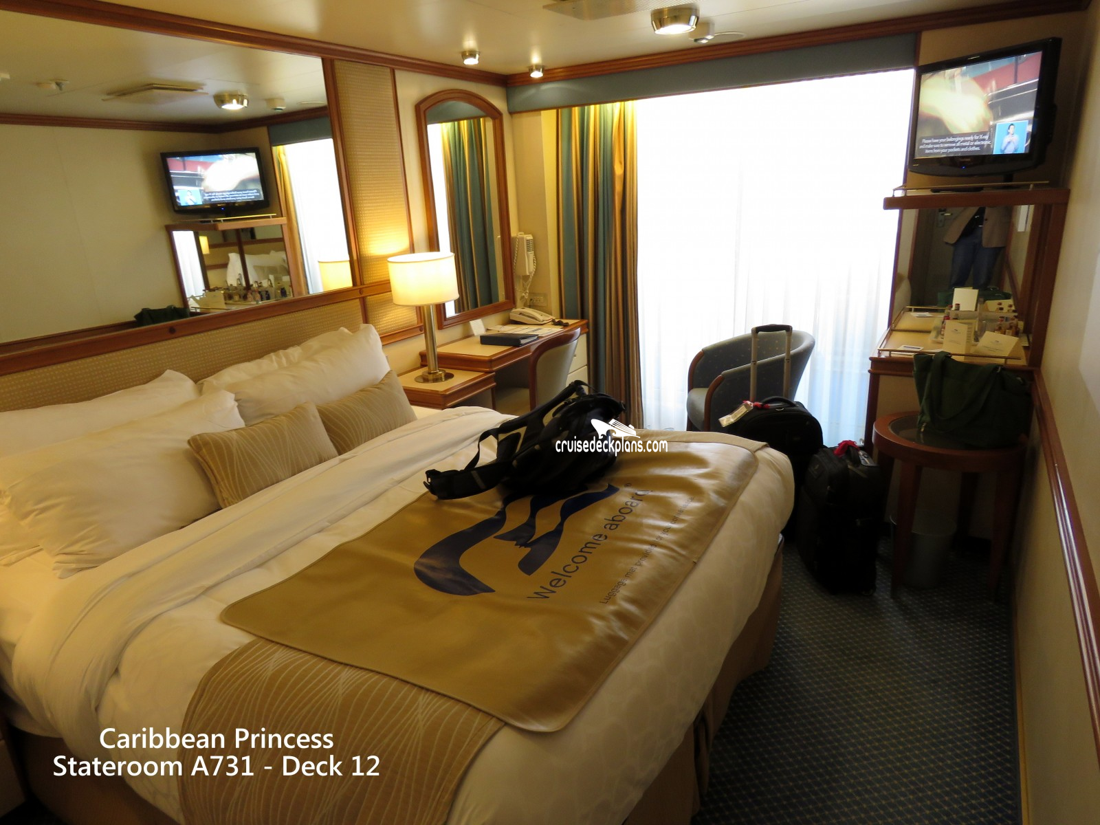 Caribbean Princess Balcony cabin number A731 ACTUAL videos and/or pictures, floor plans, diagrams and detailed features including a deck image of the actual location on the Caribbean Princess ship for cabin A731. Cruisedeckplans.com has 73,086 different (staterooms) cabins that have actual cabin pictures and/or cabin videos taken by real cruisers. That is plenty of coverage to provide you with a good sampling of all the different cabins on cruise ships. Take a minute and notice the breadcrumb menu above. This is a quick easy way to navigate our website. You can also use the menu above for menu items specific to the Caribbean Princess cruise ship.