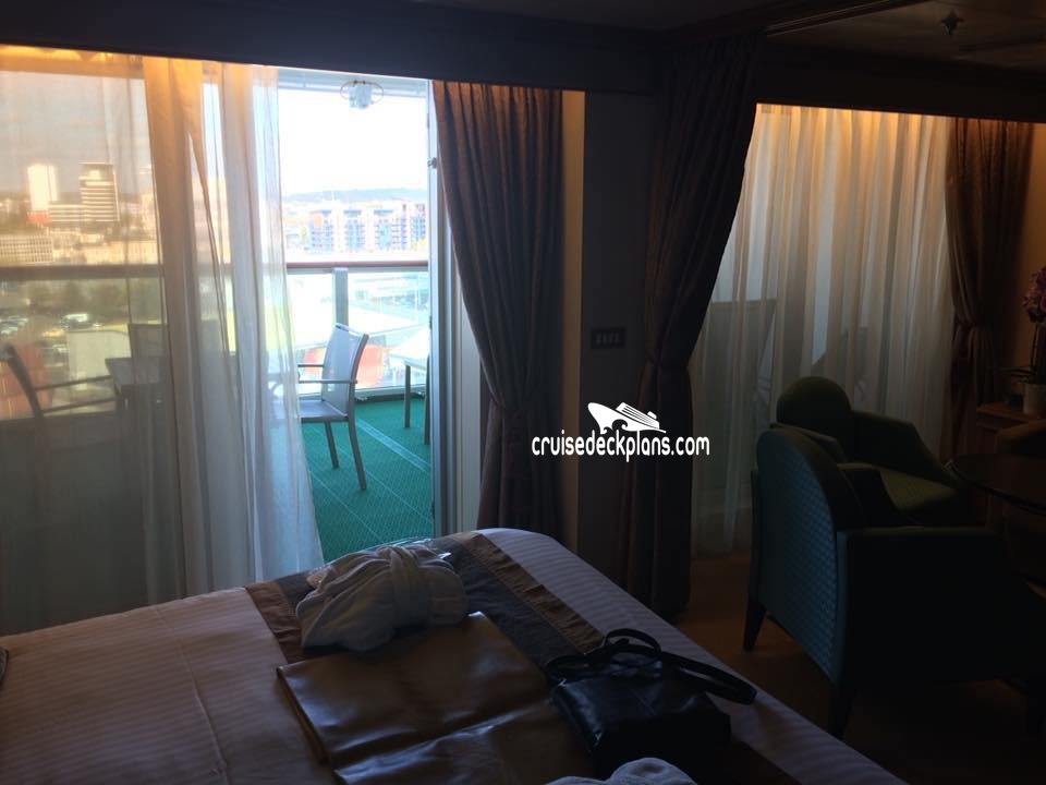Suite cabin sizes range from 304 to 411 square feet. Balcony sizes range from 155 tp 180 square feet.
