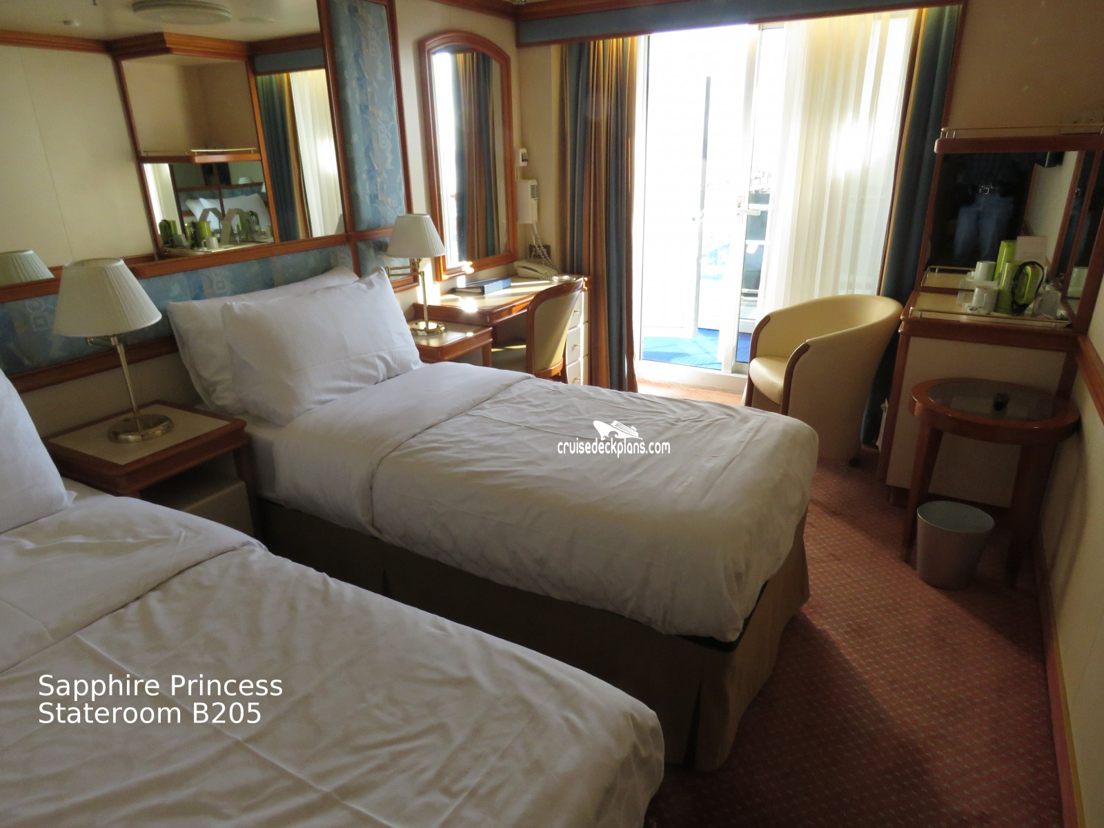 These are some actual stateroom pictures of cabin B205 on the Sapphire Princess. Click on images below for larger image and slide show. The slide show will show the date the picture was uploaded to out website. This date is useful because Sapphire Princess typically will update its cabins every three to five years with new carpeting and decor. We will keep older pictures for you to compare the more recent photos to. The pictures are sorted by the newest ones first. Most of our cabin pictures are contributed by actual cruisers. We pay 50 cents for any that we use. You can upload your cabin photos HERE. Afer you are done looking at these photos and/or the videos below you can click here to select another cabin.