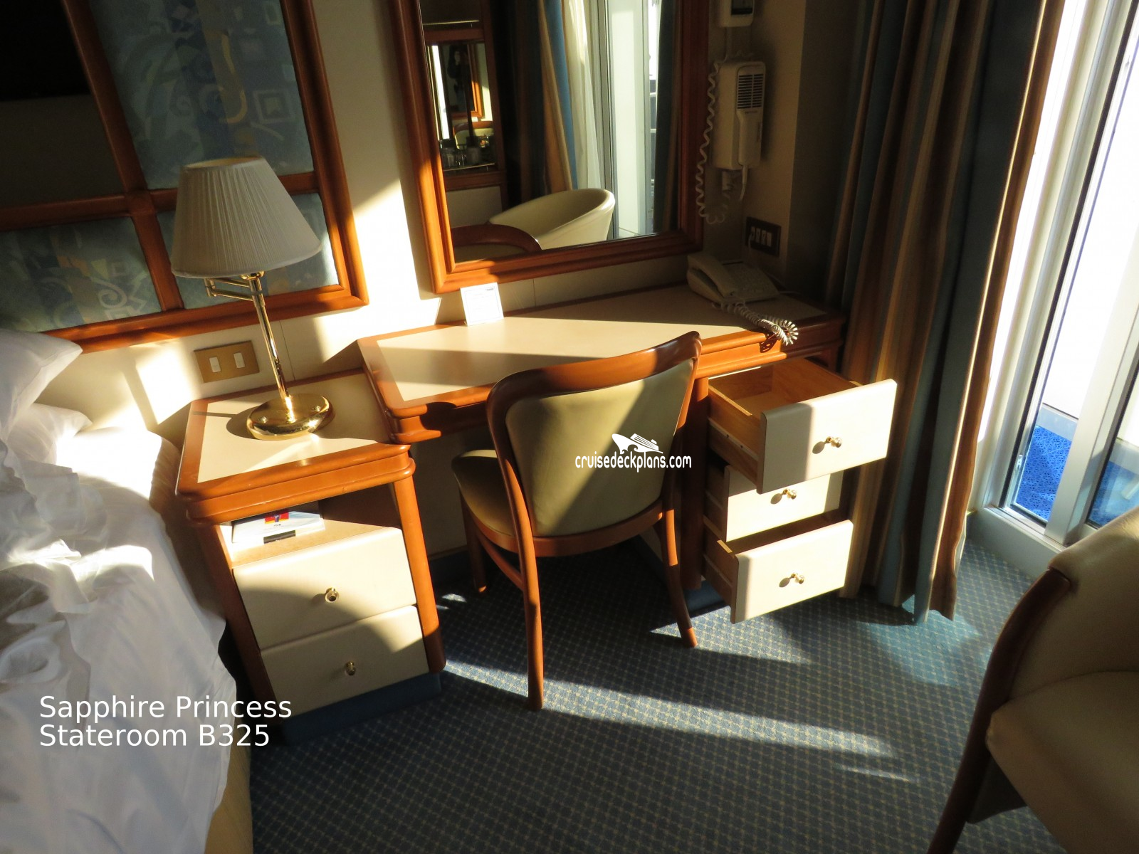 These are some actual stateroom pictures of cabin B325 on the Sapphire Princess. Click on images below for larger image and slide show. The slide show will show the date the picture was uploaded to out website. This date is useful because Sapphire Princess typically will update its cabins every three to five years with new carpeting and decor. We will keep older pictures for you to compare the more recent photos to. The pictures are sorted by the newest ones first. Most of our cabin pictures are contributed by actual cruisers. We pay 50 cents for any that we use. You can upload your cabin photos HERE. Afer you are done looking at these photos and/or the videos below you can click here to select another cabin.