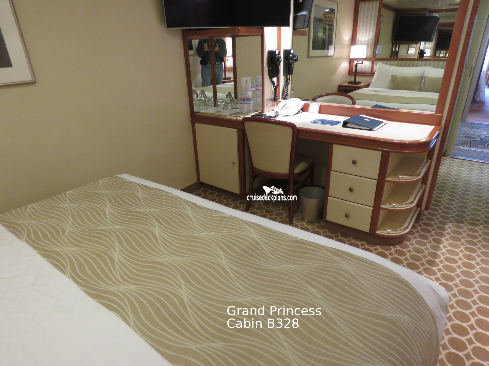 These are some actual stateroom pictures of cabin B328 on the Grand Princess. Click on images below for larger image and slide show. The slide show will show the date the picture was uploaded to out website. This date is useful because Grand Princess typically will update its cabins every three to five years with new carpeting and decor. We will keep older pictures for you to compare the more recent photos to. The pictures are sorted by the newest ones first. Most of our cabin pictures are contributed by actual cruisers. We pay 50 cents for any that we use. You can upload your cabin photos HERE. Afer you are done looking at these photos and/or the videos below you can click here to select another cabin.