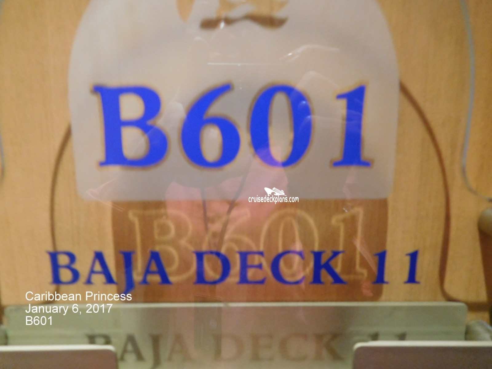 Caribbean Princess Balcony cabin number B601 ACTUAL videos and/or pictures, floor plans, diagrams and detailed features including a deck image of the actual location on the Caribbean Princess ship for cabin B601. Cruisedeckplans.com has 73,219 different (staterooms) cabins that have actual cabin pictures and/or cabin videos taken by real cruisers. That is plenty of coverage to provide you with a good sampling of all the different cabins on cruise ships. Take a minute and notice the breadcrumb menu above. This is a quick easy way to navigate our website. You can also use the menu above for menu items specific to the Caribbean Princess cruise ship.