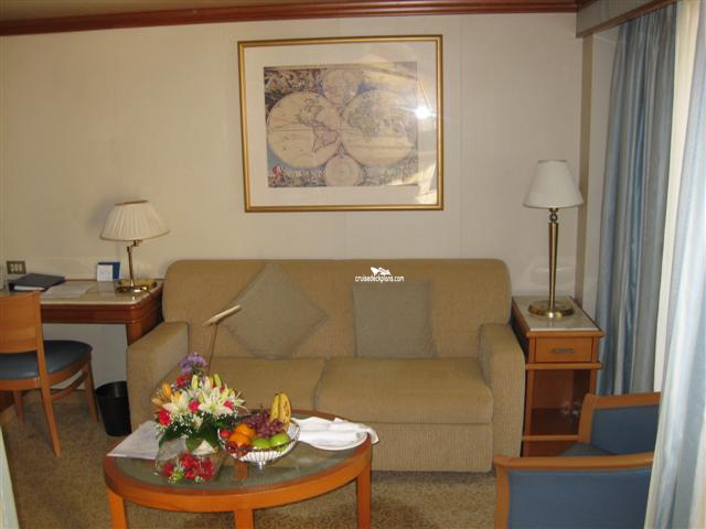 Priority Check In / Priority Debarkation / Priority Tender Boarding / Dining in the Stateroom / Afternoon Canapes / Afternoon Tea / Welcome Champagne / Exclusive Lounge / Exclusive Full Breakfast Restaurant / Priority Dining Reservations / Complimentary Laundry / Complimentary Photo(s) / Thick Cotton Robes / Pillow Menu / Upgraded balcony furniture including loungers, dining tables and chairs / complimentary mini-bar set-up / CD/DVD player with access to complimentary DVD library / Pillow-top mattress / Egyptian cotton high thread bed linens / fresh orchid in stateroom / upgraded bathroom amenities including bath salts and soothing gel eye mask / private lounge at the conclusion of the cruise / priority shore excursion reservations / priority line at service desk / use of Lotus Spa Thermal Suite / exclusive suite breakfast in Sabatinis (includes Mimosa) / exclusive elite lounge with hors d'oeuvres / extended room service menu with full menu offerings / complimentary cover charge for specialty restarants on embarkation evening / Chefs welcome goodies on embarkation day / complimentary flower corsage and boutonniere on first formal night / turndown service includes chocolate dipped stawberries or wrapped chocolates /