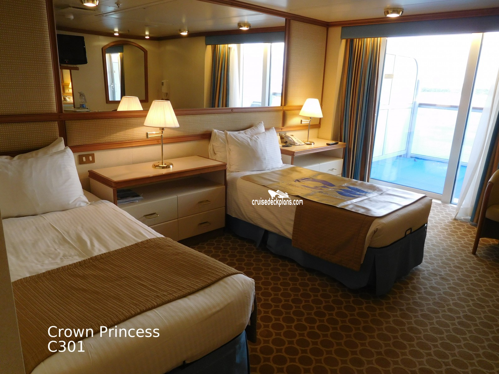 These are some actual stateroom pictures of cabin C301 on the Crown Princess. Click on images below for larger image and slide show. The slide show will show the date the picture was uploaded to out website. This date is useful because Crown Princess typically will update its cabins every three to five years with new carpeting and decor. We will keep older pictures for you to compare the more recent photos to. The pictures are sorted by the newest ones first. Most of our cabin pictures are contributed by actual cruisers. We pay 50 cents for any that we use. You can upload your cabin photos HERE. Afer you are done looking at these photos and/or the videos below you can click here to select another cabin.