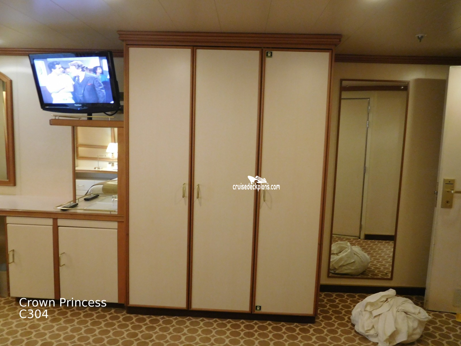 These are some actual stateroom pictures of cabin C304 on the Crown Princess. Click on images below for larger image and slide show. The slide show will show the date the picture was uploaded to out website. This date is useful because Crown Princess typically will update its cabins every three to five years with new carpeting and decor. We will keep older pictures for you to compare the more recent photos to. The pictures are sorted by the newest ones first. Most of our cabin pictures are contributed by actual cruisers. We pay 50 cents for any that we use. You can upload your cabin photos HERE. Afer you are done looking at these photos and/or the videos below you can click here to select another cabin.