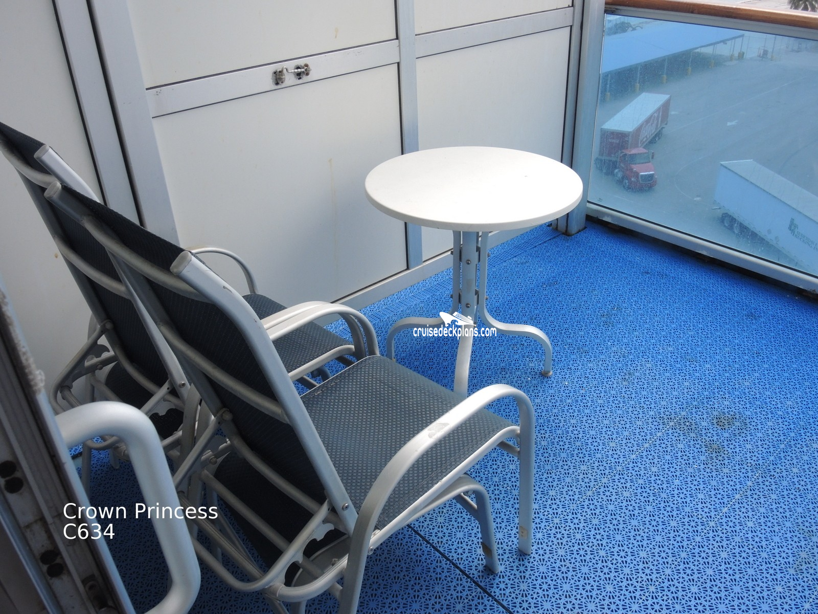 Crown Princess Balcony cabin number C634 ACTUAL videos and/or pictures, floor plans, diagrams and detailed features including a deck image of the actual location on the Crown Princess ship for cabin C634. Cruisedeckplans.com has 73,139 different (staterooms) cabins that have actual cabin pictures and/or cabin videos taken by real cruisers. That is plenty of coverage to provide you with a good sampling of all the different cabins on cruise ships. Take a minute and notice the breadcrumb menu above. This is a quick easy way to navigate our website. You can also use the menu above for menu items specific to the Crown Princess cruise ship.
