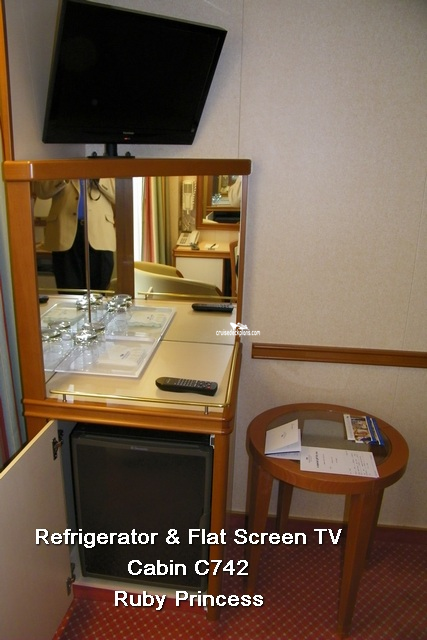 These are some actual stateroom pictures of cabin C742 on the Ruby Princess. Click on images below for larger image and slide show. The slide show will show the date the picture was uploaded to out website. This date is useful because Ruby Princess typically will update its cabins every three to five years with new carpeting and decor. We will keep older pictures for you to compare the more recent photos to. The pictures are sorted by the newest ones first. Most of our cabin pictures are contributed by actual cruisers. We pay 50 cents for any that we use. You can upload your cabin photos HERE. Afer you are done looking at these photos and/or the videos below you can click here to select another cabin.
