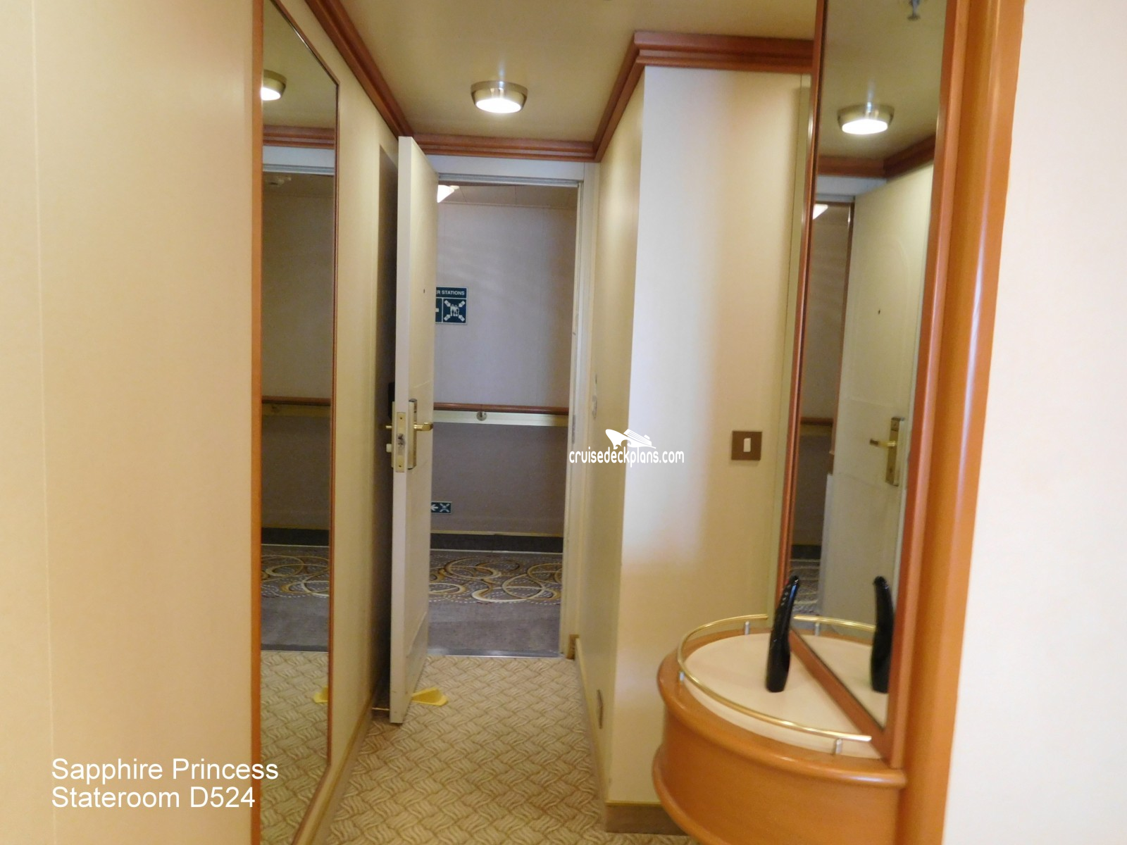 These are some actual stateroom pictures of cabin D524 on the Sapphire Princess. Click on images below for larger image and slide show. The slide show will show the date the picture was uploaded to out website. This date is useful because Sapphire Princess typically will update its cabins every three to five years with new carpeting and decor. We will keep older pictures for you to compare the more recent photos to. The pictures are sorted by the newest ones first. Most of our cabin pictures are contributed by actual cruisers. We pay 50 cents for any that we use. You can upload your cabin photos HERE. Afer you are done looking at these photos and/or the videos below you can click here to select another cabin.