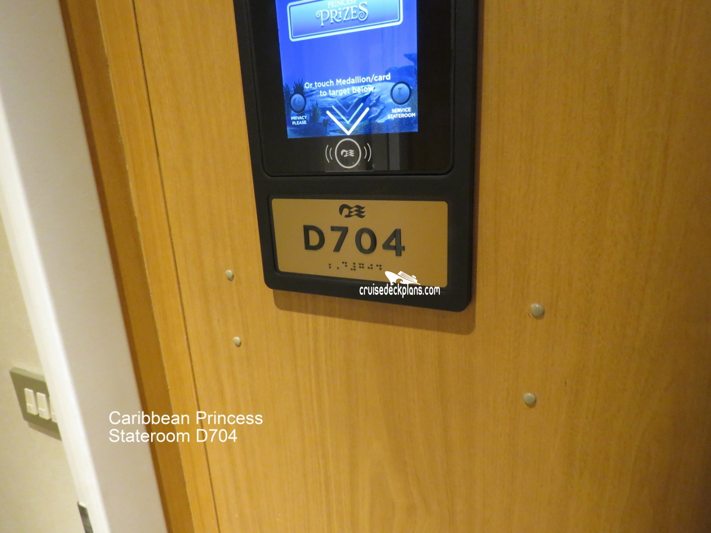 These are some actual stateroom pictures of cabin D704 on the Caribbean Princess. Click on images below for larger image and slide show. The slide show will show the date the picture was uploaded to out website. This date is useful because Caribbean Princess typically will update its cabins every three to five years with new carpeting and decor. We will keep older pictures for you to compare the more recent photos to. The pictures are sorted by the newest ones first. Most of our cabin pictures are contributed by actual cruisers. We pay 50 cents for any that we use. You can upload your cabin photos HERE. Afer you are done looking at these photos and/or the videos below you can click here to select another cabin.