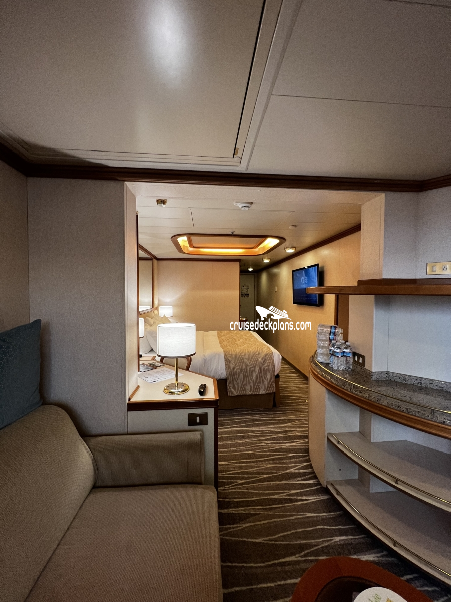 Ruby Princess Mini-Suite cabin number D733 ACTUAL videos and/or pictures, floor plans, diagrams and detailed features including a deck image of the actual location on the Ruby Princess ship for cabin D733. Cruisedeckplans.com has 75,101 different (staterooms) cabins that have actual cabin pictures and/or cabin videos taken by real cruisers. That is plenty of coverage to provide you with a good sampling of all the different cabins on cruise ships. Take a minute and notice the breadcrumb menu above. This is a quick easy way to navigate our website. You can also use the menu above for menu items specific to the Ruby Princess cruise ship.