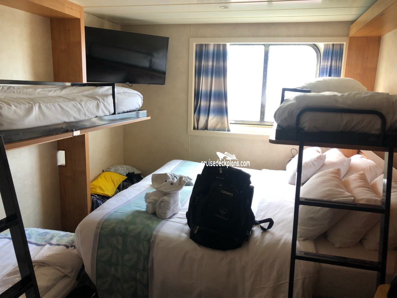 Carnival Elation Oceanview cabin number E199 ACTUAL videos and/or pictures, floor plans, diagrams and detailed features including a deck image of the actual location on the Carnival Elation ship for cabin E199. Cruisedeckplans.com has 73,105 different (staterooms) cabins that have actual cabin pictures and/or cabin videos taken by real cruisers. That is plenty of coverage to provide you with a good sampling of all the different cabins on cruise ships. Take a minute and notice the breadcrumb menu above. This is a quick easy way to navigate our website. You can also use the menu above for menu items specific to the Carnival Elation cruise ship.