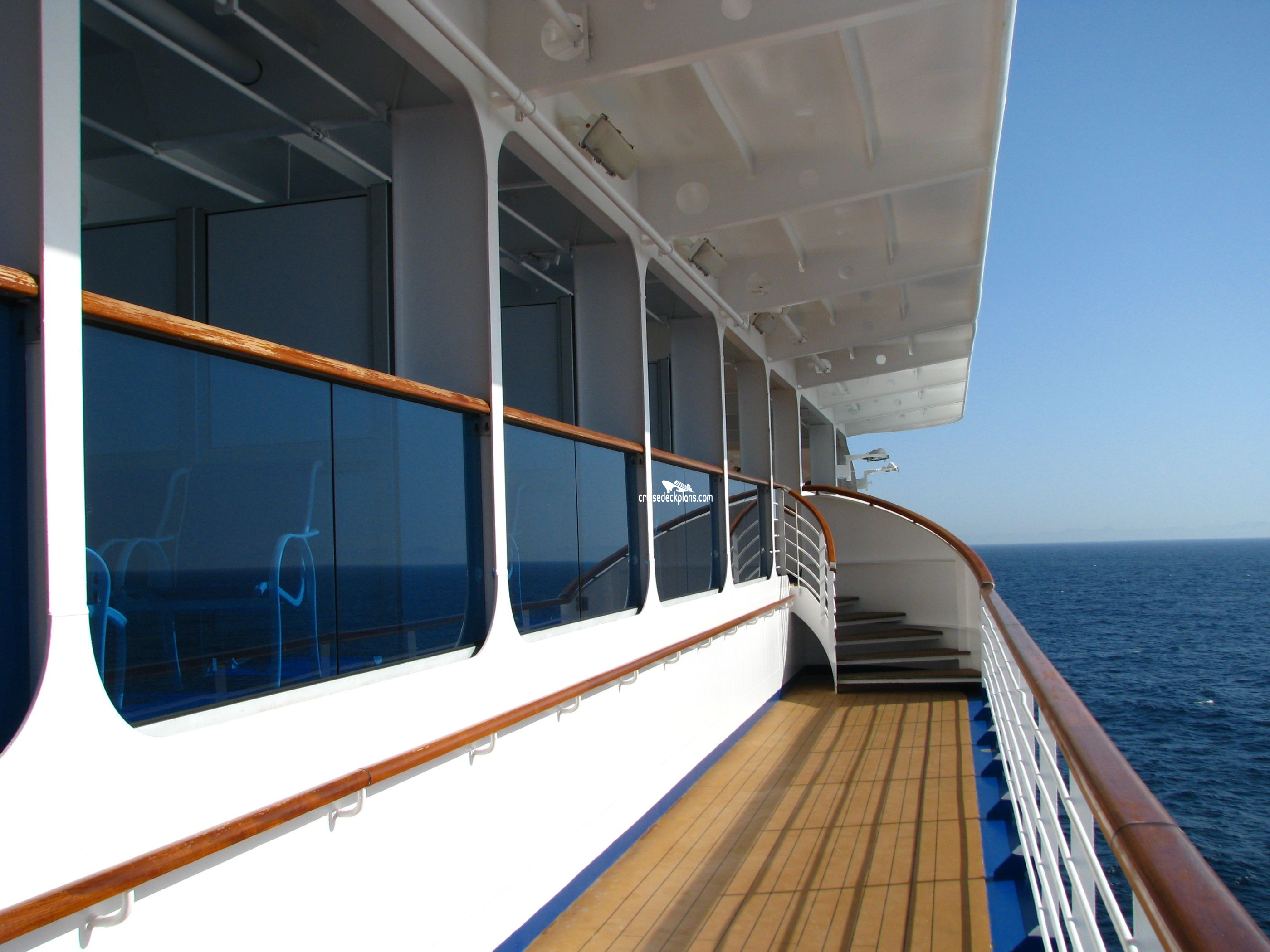 Balcony size ranges from 46 to 89 square feet. Caribe deck balconies are sized 9 ft. wide x 9 ft. deep and have ceiling overhang/balcony cover over the first 5 ft.