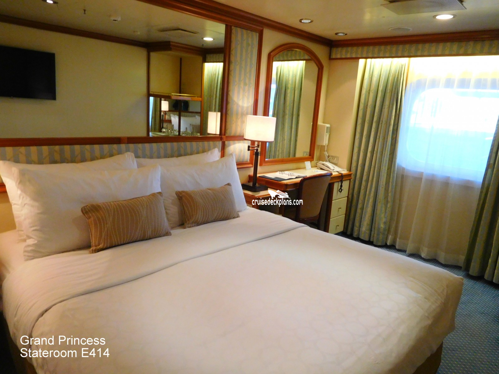 Grand Princess Oceanview cabin number E414 ACTUAL videos and/or pictures, floor plans, diagrams and detailed features including a deck image of the actual location on the Grand Princess ship for cabin E414. Cruisedeckplans.com has 72,973 different (staterooms) cabins that have actual cabin pictures and/or cabin videos taken by real cruisers. That is plenty of coverage to provide you with a good sampling of all the different cabins on cruise ships. Take a minute and notice the breadcrumb menu above. This is a quick easy way to navigate our website. You can also use the menu above for menu items specific to the Grand Princess cruise ship.
