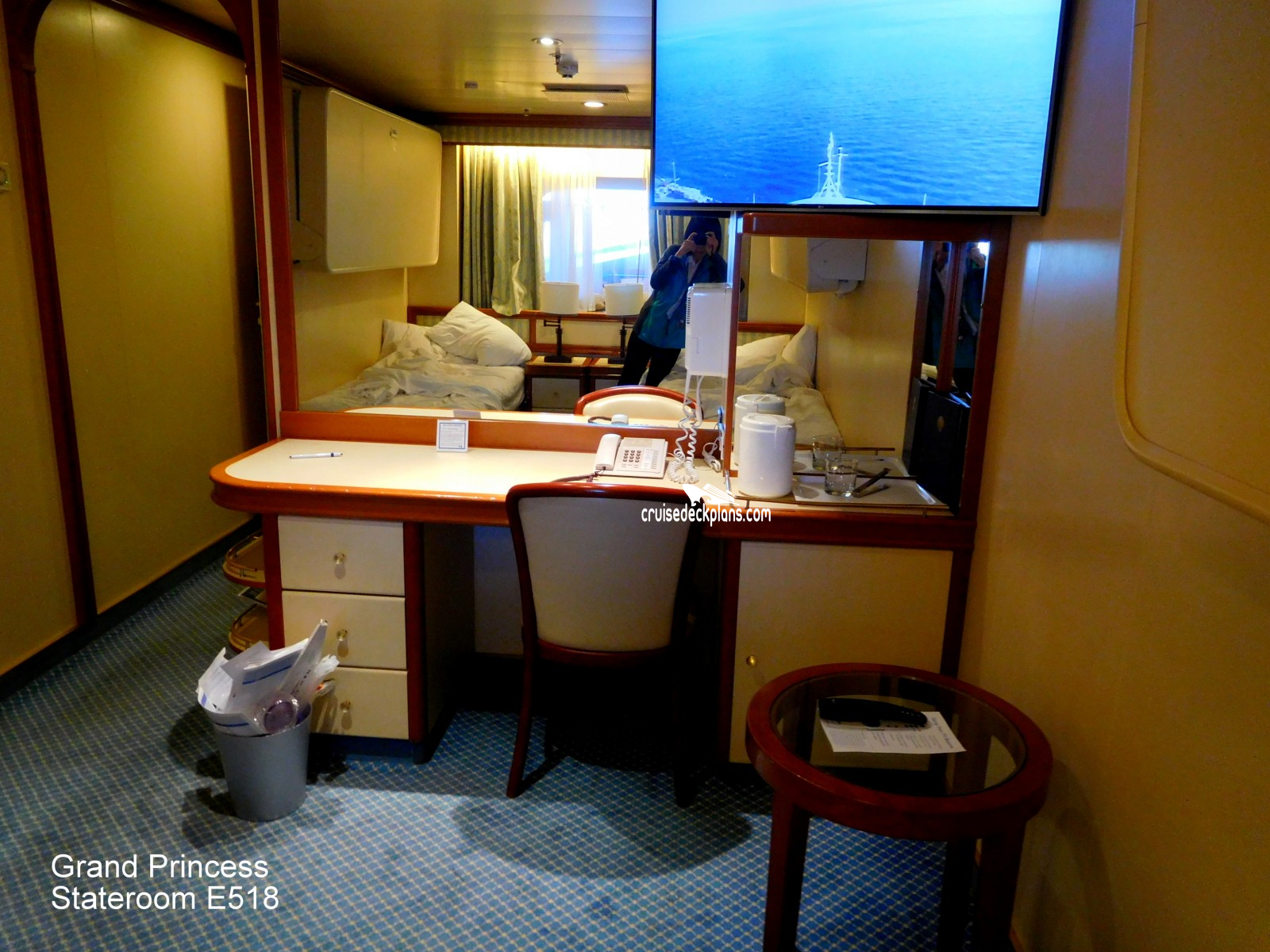 These are some actual stateroom pictures of cabin E518 on the Grand Princess. Click on images below for larger image and slide show. The slide show will show the date the picture was uploaded to out website. This date is useful because Grand Princess typically will update its cabins every three to five years with new carpeting and decor. We will keep older pictures for you to compare the more recent photos to. The pictures are sorted by the newest ones first. Most of our cabin pictures are contributed by actual cruisers. We pay 50 cents for any that we use. You can upload your cabin photos HERE. Afer you are done looking at these photos and/or the videos below you can click here to select another cabin.