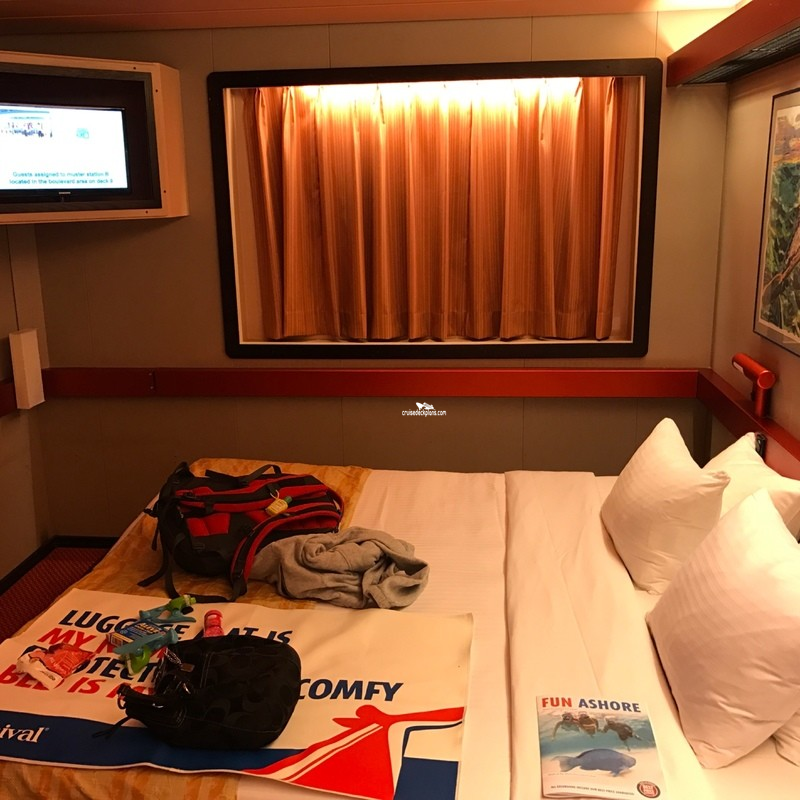 Carnival Elation Interior cabin number E89 ACTUAL videos and/or pictures, floor plans, diagrams and detailed features including a deck image of the actual location on the Carnival Elation ship for cabin E89. Cruisedeckplans.com has 73,127 different (staterooms) cabins that have actual cabin pictures and/or cabin videos taken by real cruisers. That is plenty of coverage to provide you with a good sampling of all the different cabins on cruise ships. Take a minute and notice the breadcrumb menu above. This is a quick easy way to navigate our website. You can also use the menu above for menu items specific to the Carnival Elation cruise ship.