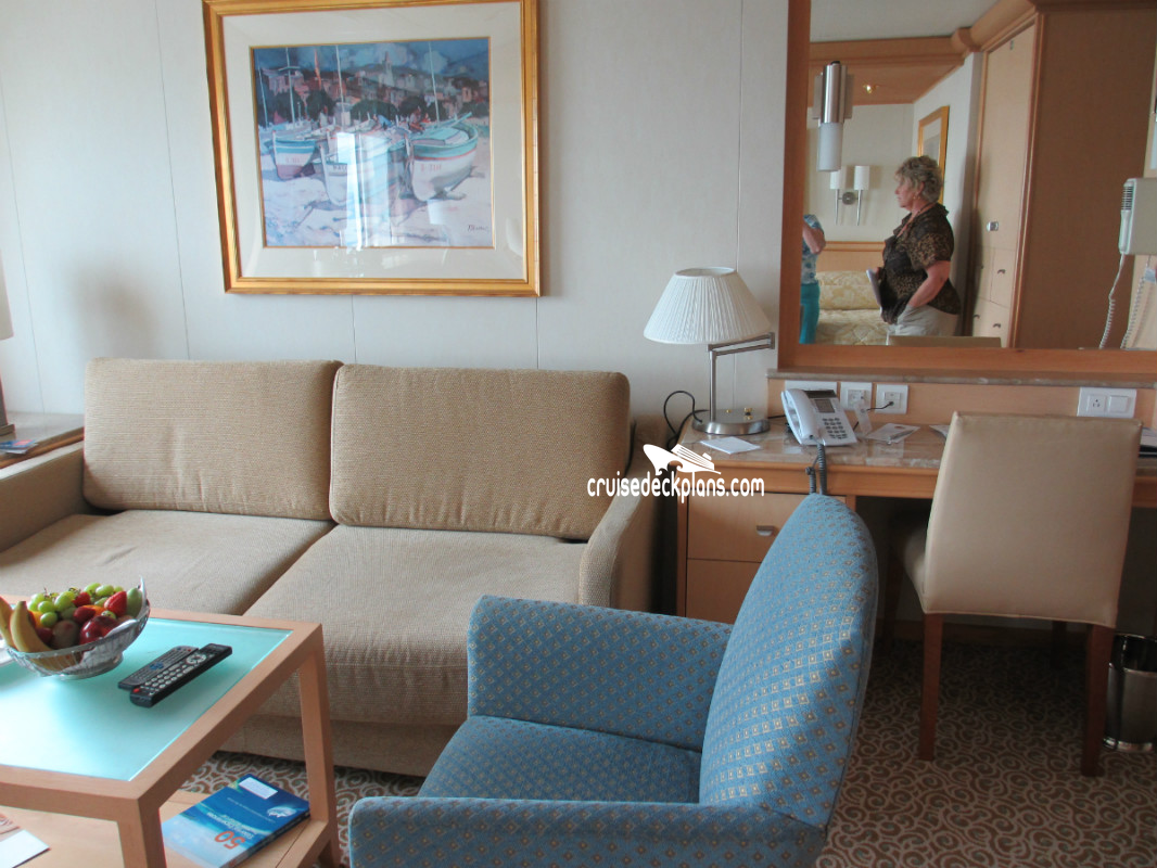 Priority Check In / Priority Debarkation / Priority Tender Boarding / Dining in the Stateroom / Afternoon Canapes / Afternoon Tea / Welcome Champagne / Exclusive Lounge / Exclusive Full Breakfast Restaurant / Priority Dining Reservations / Complimentary Laundry / Complimentary Photo(s) / Thick Cotton Robes / Pillow Menu / Upgraded balcony furniture including loungers, dining tables and chairs / complimentary mini-bar set-up / CD/DVD player with access to complimentary DVD library / Pillow-top mattress / Egyptian cotton high thread bed linens / fresh orchid in stateroom / upgraded bathroom amenities including bath salts and soothing gel eye mask / private lounge at the conclusion of the cruise / priority shore excursion reservations / priority line at service desk / use of Lotus Spa Thermal Suite / exclusive suite breakfast in Sabatinis (includes Mimosa) / exclusive elite lounge with hors d'oeuvres / extended room service menu with full menu offerings / complimentary cover charge for specialty restarants on embarkation evening / Chefs welcome goodies on embarkation day / complimentary flower corsage and boutonniere on first formal night / turndown service includes chocolate dipped stawberries or wrapped chocolates /