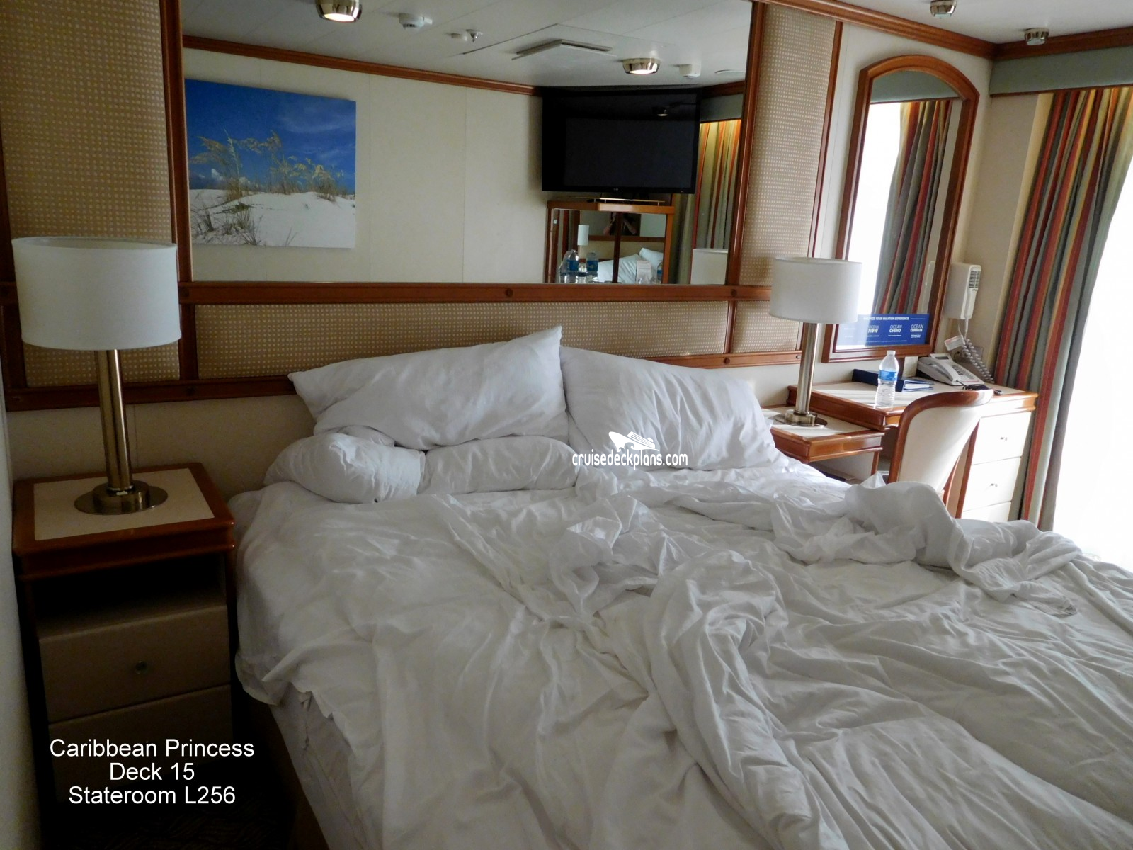 These are some actual stateroom pictures of cabin L256 on the Caribbean Princess. Click on images below for larger image and slide show. The slide show will show the date the picture was uploaded to out website. This date is useful because Caribbean Princess typically will update its cabins every three to five years with new carpeting and decor. We will keep older pictures for you to compare the more recent photos to. The pictures are sorted by the newest ones first. Most of our cabin pictures are contributed by actual cruisers. We pay 50 cents for any that we use. You can upload your cabin photos HERE. Afer you are done looking at these photos and/or the videos below you can click here to select another cabin.