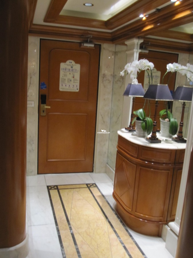 Priority Check In / Priority Debarkation / Priority Tender Boarding / Dining in the Stateroom / Afternoon Canapes / Afternoon Tea / Welcome Champagne / Exclusive Lounge / Exclusive Full Breakfast Restaurant / Priority Dining Reservations / Complimentary Laundry / Complimentary Photo(s) / Thick Cotton Robes / Pillow Menu / Upgraded balcony furniture including loungers, dining tables and chairs / complimentary mini-bar set-up / CD/DVD player with access to complimentary DVD library / Pillow-top mattress / Egyptian cotton high thread bed linens / fresh orchid in stateroom / upgraded bathroom amenities including bath salts and soothing gel eye mask / private lounge at the conclusion of the cruise / priority shore excursion reservations / priority line at service desk / use of Lotus Spa Thermal Suite / exclusive suite breakfast in Sabatinis (includes Mimosa) / exclusive elite lounge with hors d'oeuvres / extended room service menu with full menu offerings / complimentary cover charge for specialty restarants on embarkation evening / Chefs welcome goodies on embarkation day / complimentary flower corsage and boutonniere on first formal night / turndown service includes chocolate dipped stawberries or wrapped chocolates /
