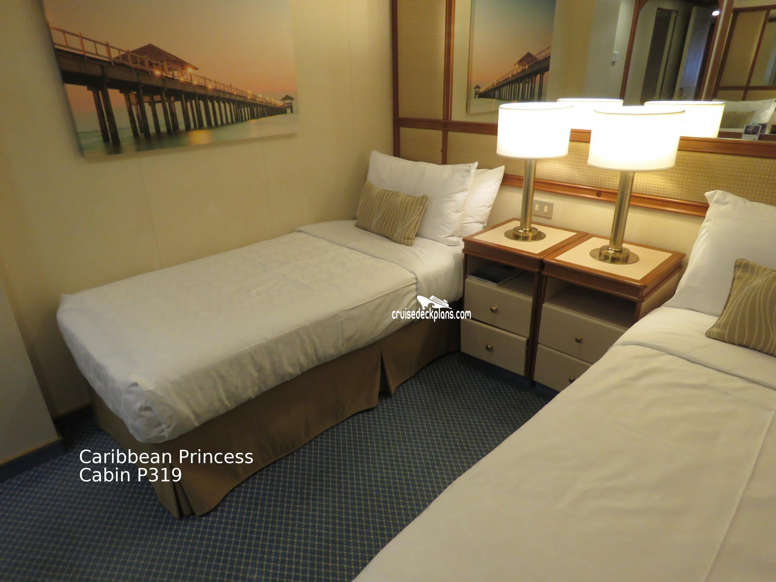Caribbean Princess Interior cabin number P319 ACTUAL videos and/or pictures, floor plans, diagrams and detailed features including a deck image of the actual location on the Caribbean Princess ship for cabin P319. Cruisedeckplans.com has 74,589 different (staterooms) cabins that have actual cabin pictures and/or cabin videos taken by real cruisers. That is plenty of coverage to provide you with a good sampling of all the different cabins on cruise ships. Take a minute and notice the breadcrumb menu above. This is a quick easy way to navigate our website. You can also use the menu above for menu items specific to the Caribbean Princess cruise ship.