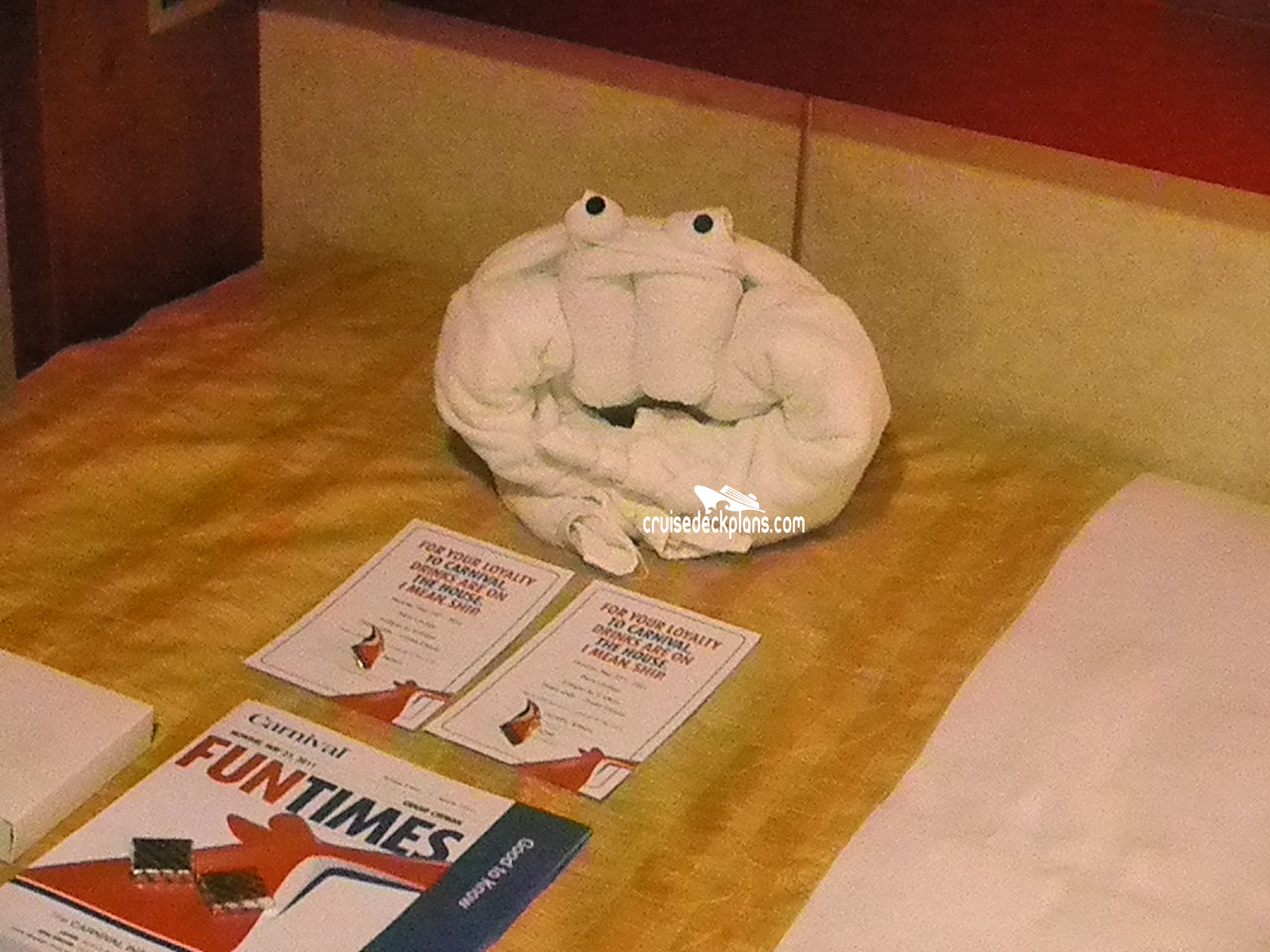 These are some actual stateroom pictures of cabin R298 on the Carnival Inspiration. Click on images below for larger image and slide show. The slide show will show the date the picture was uploaded to out website. This date is useful because Carnival Inspiration typically will update its cabins every three to five years with new carpeting and decor. We will keep older pictures for you to compare the more recent photos to. The pictures are sorted by the newest ones first. Most of our cabin pictures are contributed by actual cruisers. We pay 50 cents for any that we use. You can upload your cabin photos HERE. Afer you are done looking at these photos and/or the videos below you can click here to select another cabin.