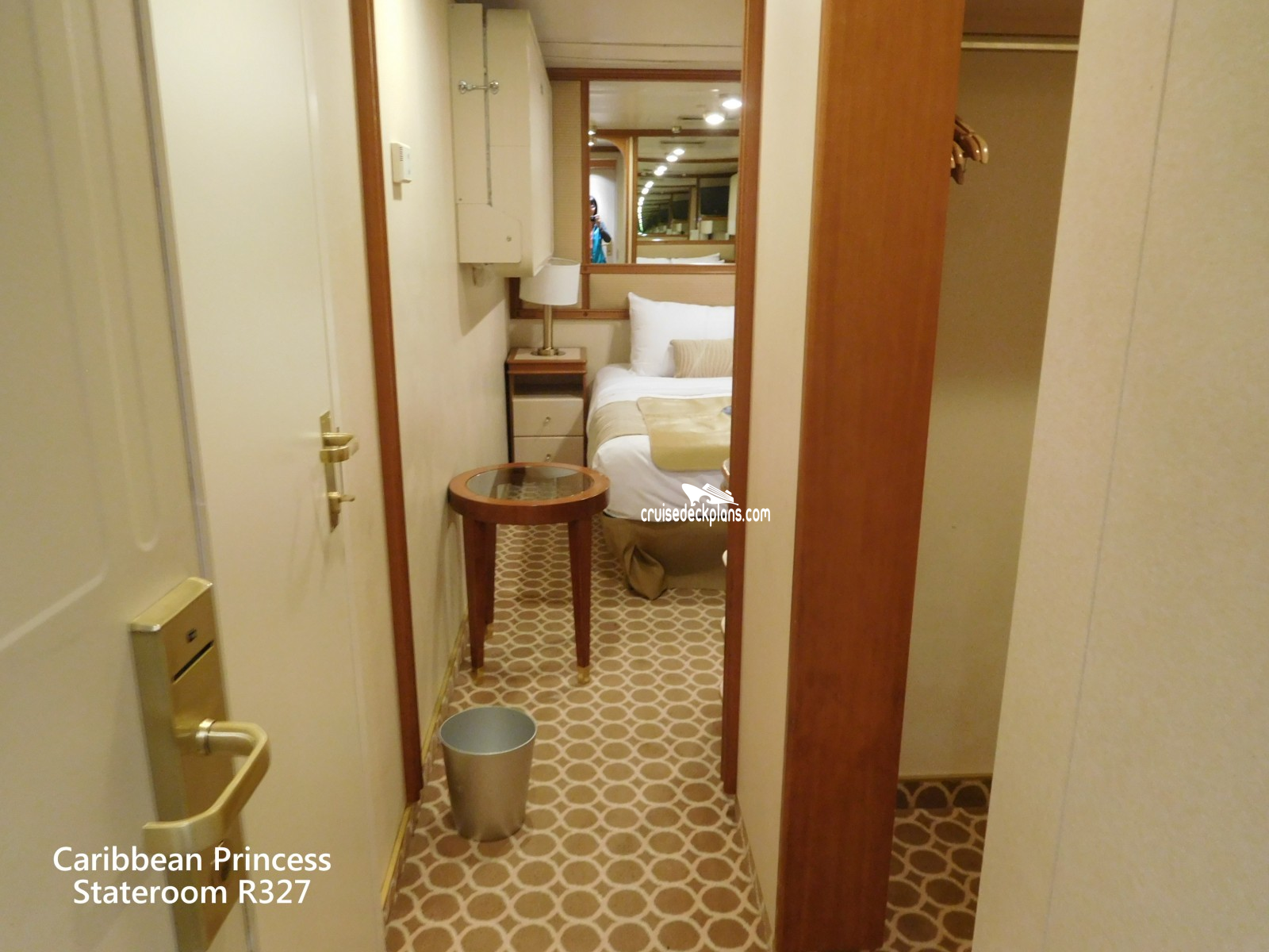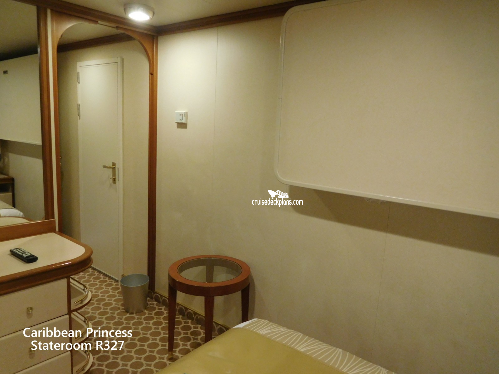 Caribbean Princess Interior cabin number R327 ACTUAL videos and/or pictures, floor plans, diagrams and detailed features including a deck image of the actual location on the Caribbean Princess ship for cabin R327. Cruisedeckplans.com has 75,989 different (staterooms) cabins that have actual cabin pictures and/or cabin videos taken by real cruisers. That is plenty of coverage to provide you with a good sampling of all the different cabins on cruise ships. Take a minute and notice the breadcrumb menu above. This is a quick easy way to navigate our website. You can also use the menu above for menu items specific to the Caribbean Princess cruise ship.