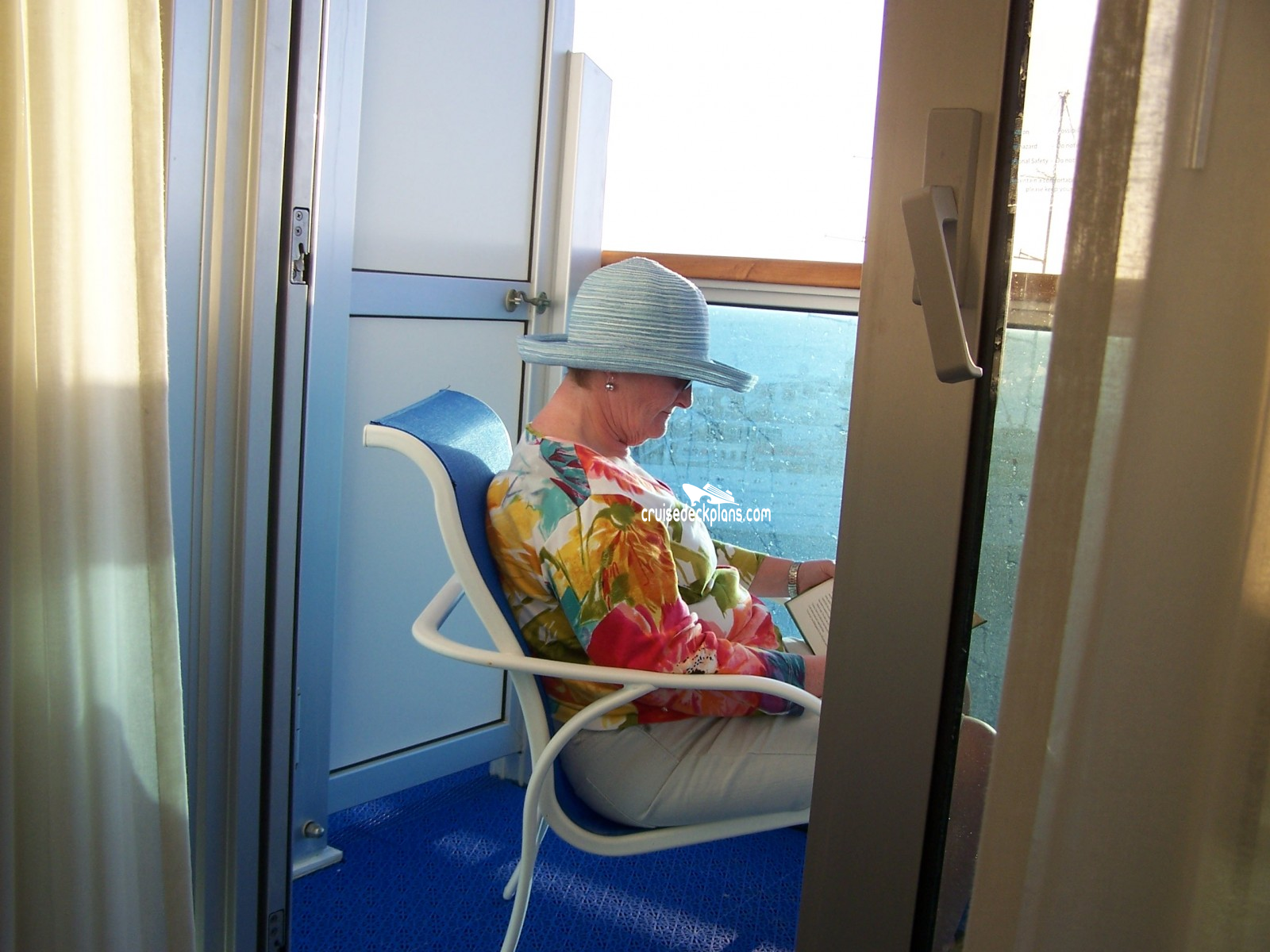 Balcony size ranges from 46 to 89 square feet. Caribe deck balconies are sized 9 ft. wide x 9 ft. deep and have ceiling overhang/balcony cover over the first 5 ft.