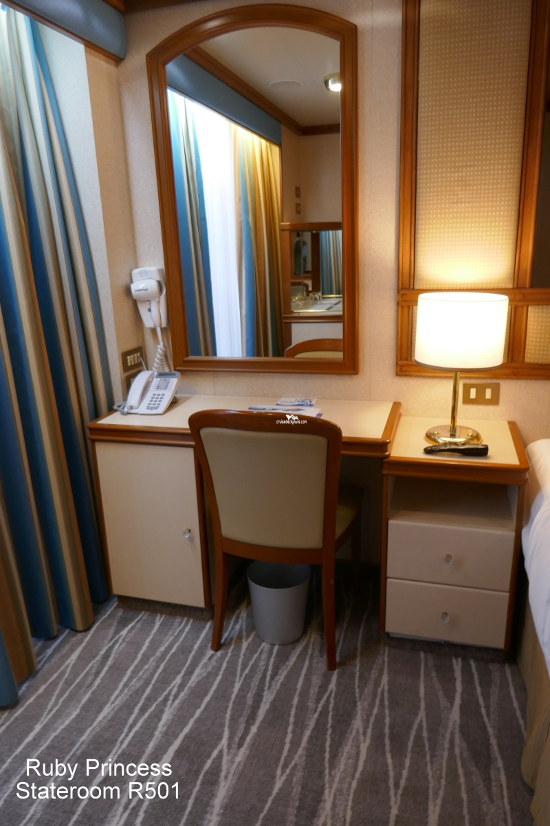 These are some actual stateroom pictures of cabin R501 on the Ruby Princess. Click on images below for larger image and slide show. The slide show will show the date the picture was uploaded to out website. This date is useful because Ruby Princess typically will update its cabins every three to five years with new carpeting and decor. We will keep older pictures for you to compare the more recent photos to. The pictures are sorted by the newest ones first. Most of our cabin pictures are contributed by actual cruisers. We pay 50 cents for any that we use. You can upload your cabin photos HERE. Afer you are done looking at these photos and/or the videos below you can click here to select another cabin.