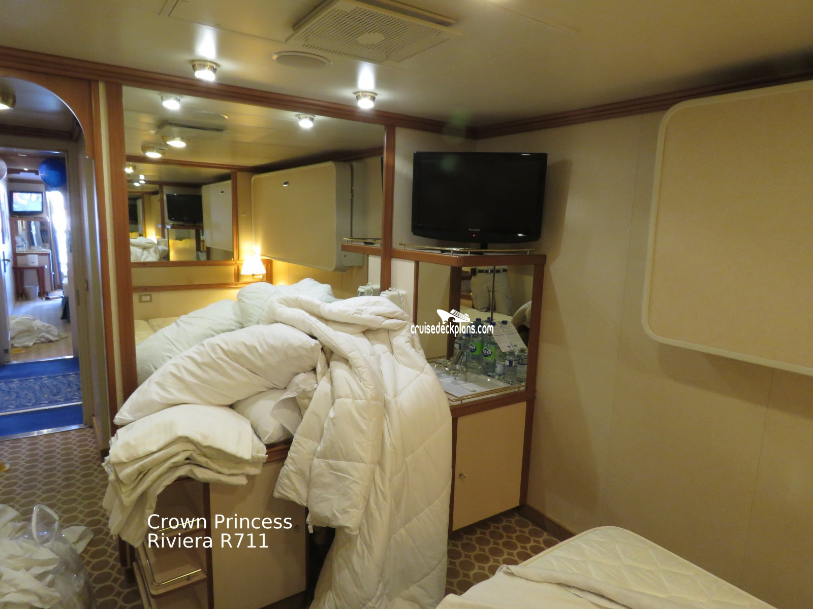 Crown Princess Interior cabin number R711 ACTUAL videos and/or pictures, floor plans, diagrams and detailed features including a deck image of the actual location on the Crown Princess ship for cabin R711. Cruisedeckplans.com has 72,949 different (staterooms) cabins that have actual cabin pictures and/or cabin videos taken by real cruisers. That is plenty of coverage to provide you with a good sampling of all the different cabins on cruise ships. Take a minute and notice the breadcrumb menu above. This is a quick easy way to navigate our website. You can also use the menu above for menu items specific to the Crown Princess cruise ship.
