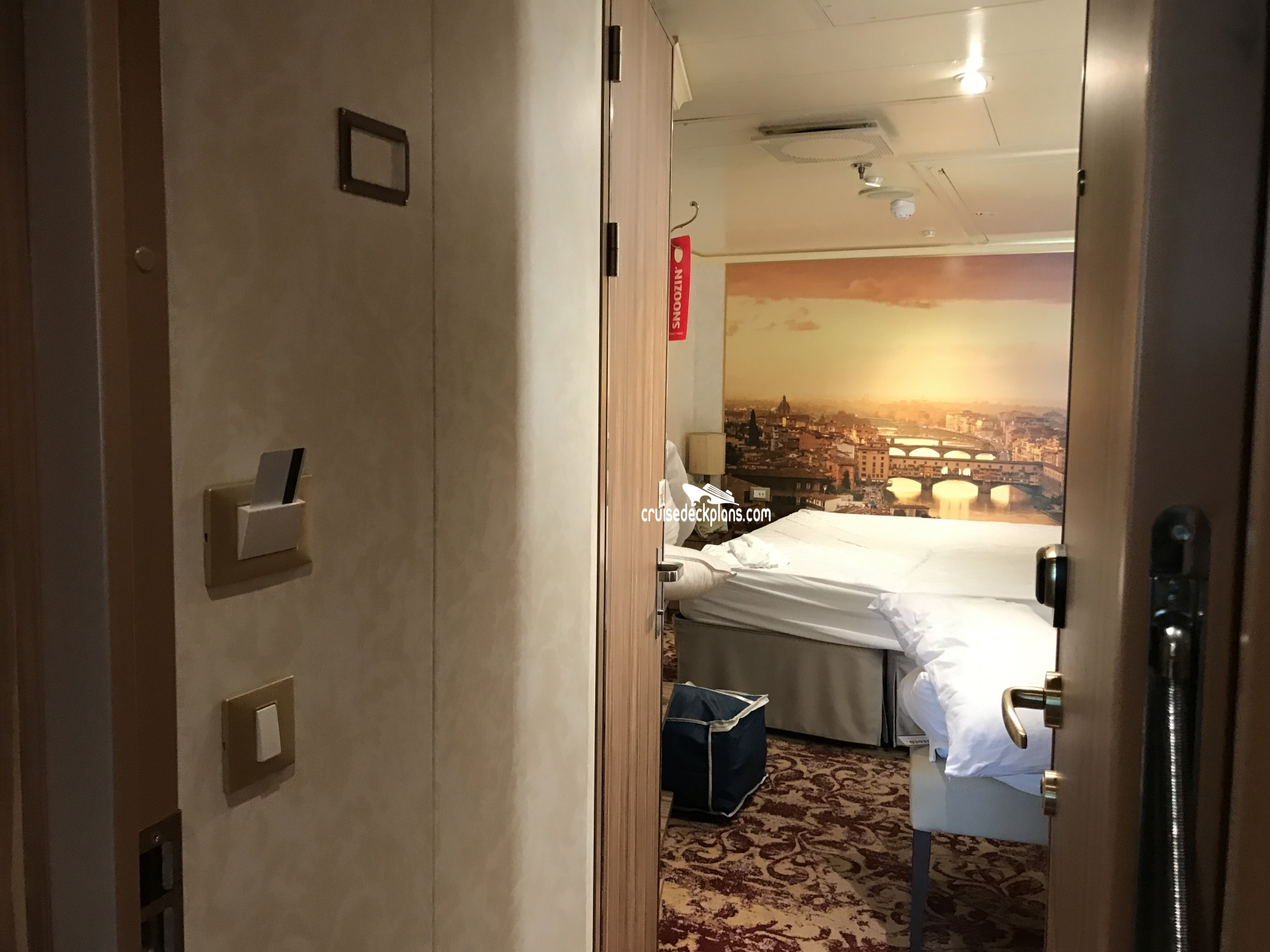 Carnival Firenze Interior cabin number 1217 ACTUAL videos and/or pictures, floor plans, diagrams and detailed features including a deck image of the actual location on the Carnival Firenze ship for cabin 1217. Cruisedeckplans.com has 72,317 different (staterooms) cabins that have actual cabin pictures and/or cabin videos taken by real cruisers. That is plenty of coverage to provide you with a good sampling of all the different cabins on cruise ships. Take a minute and notice the breadcrumb menu above. This is a quick easy way to navigate our website. You can also use the menu above for menu items specific to the Carnival Firenze cruise ship.