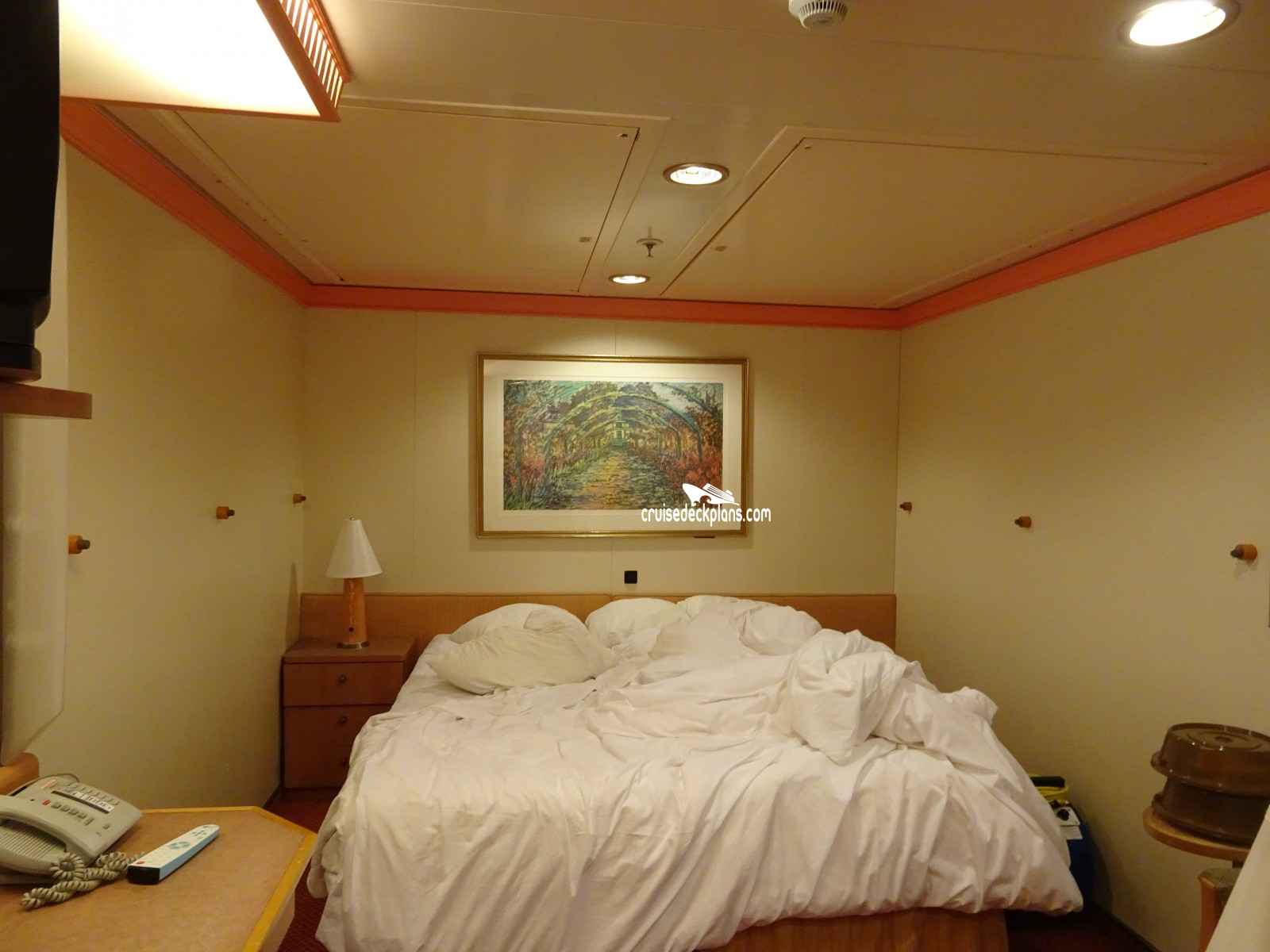 Category 1A is only 160 square feet and has only upper and lower beds. Cabin 1111, 1247, 1249, 1255, 1257 have 2 single beds that can be pushed together.
