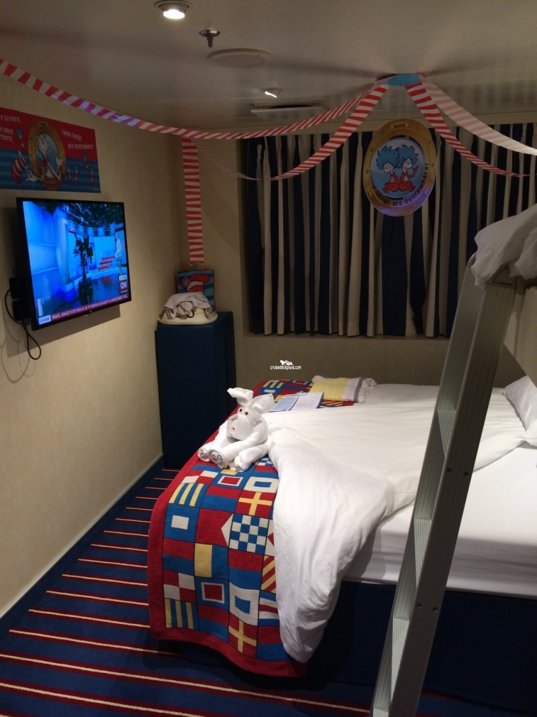 Category FJ cabins with two uppers berths, lower twin beds do not convert when both uppers are in use.
