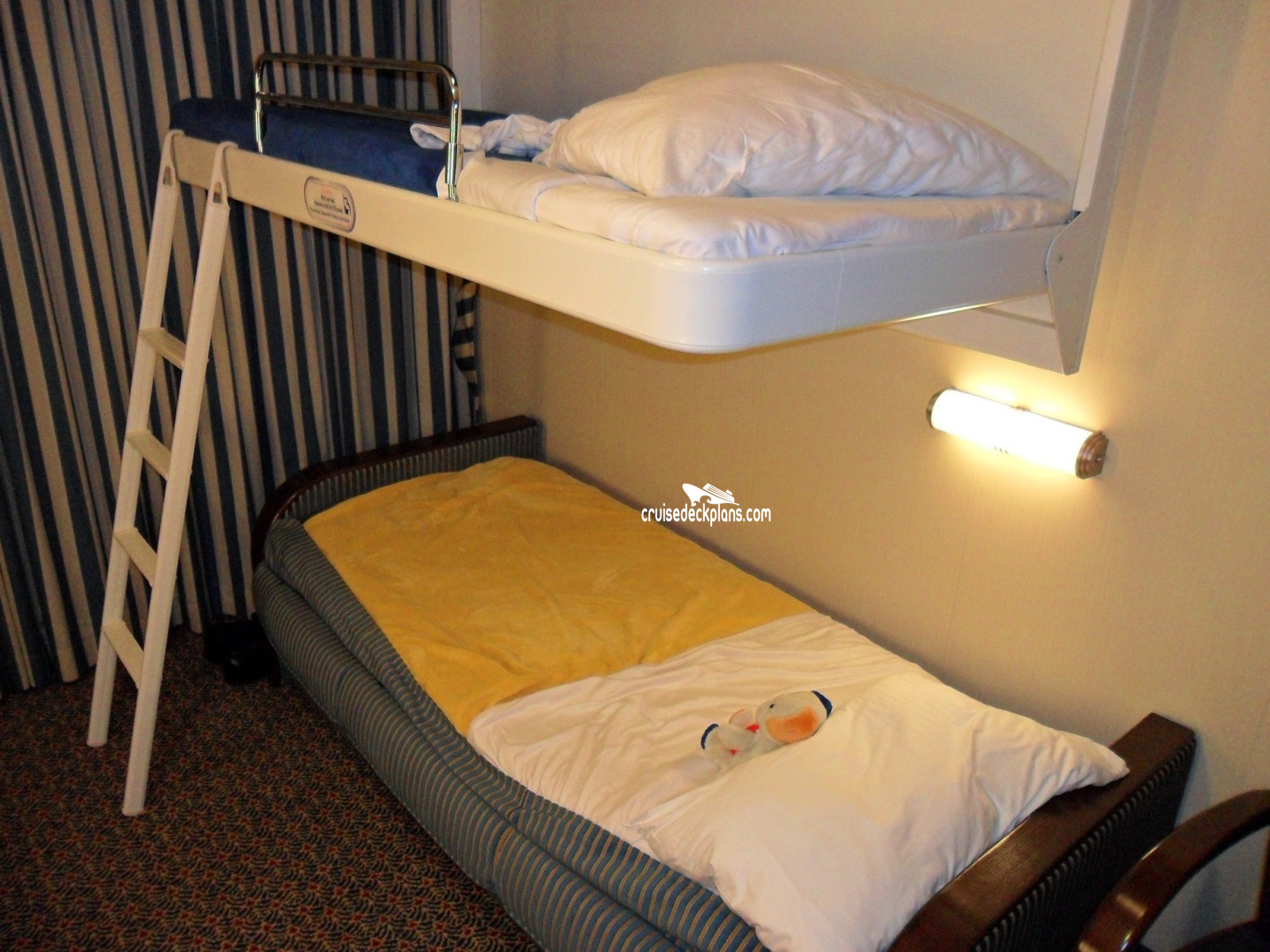 Sleeps: 4 to 5. Deck 5 category 4E Staterooms are 203 square feet and have expanded balconies that are twice as big as normal balconies and open to the views from above.