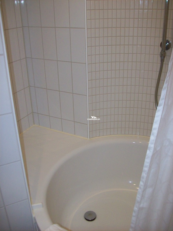 - Full bath that includes vanity, sink, round tub (with built in seat) and shower (with hand-held showerhead)