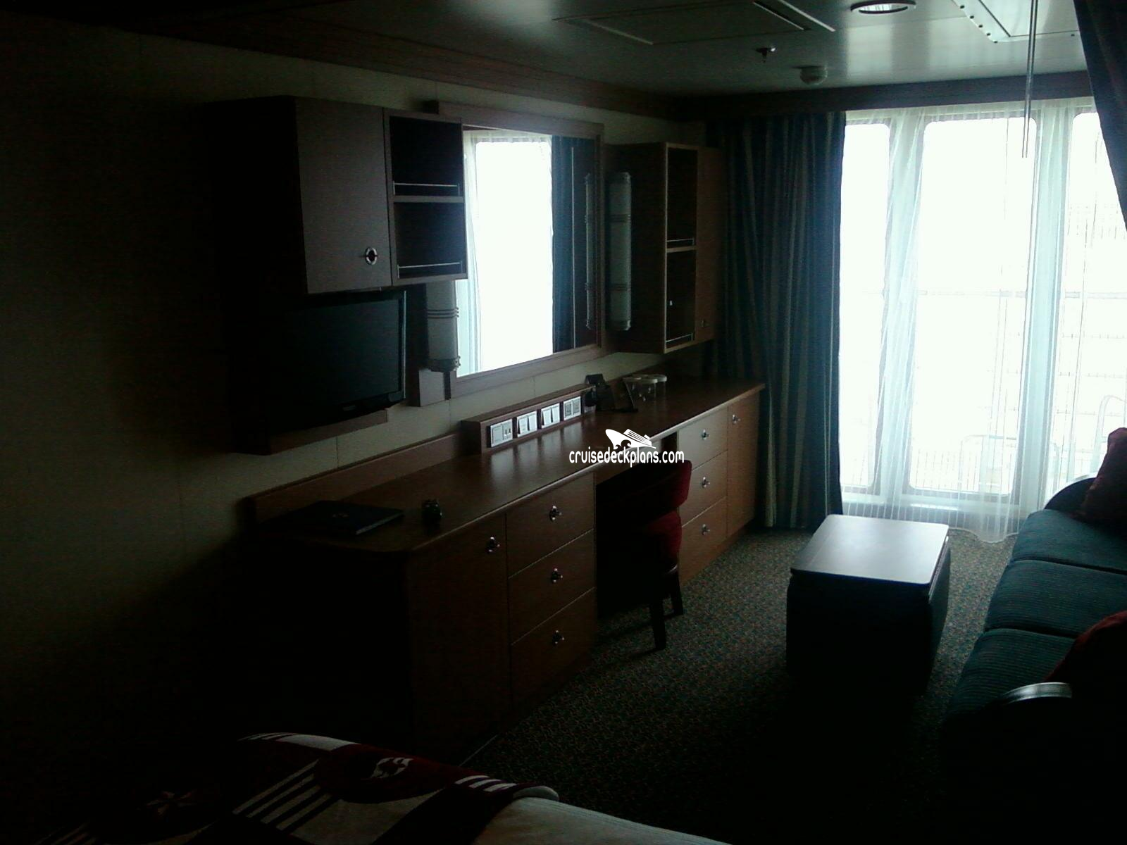 Sleeps: 4 to 5. Deck 5 category 4E Staterooms are 203 square feet and have expanded balconies that are twice as big as normal balconies and open to the views from above.