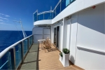 Category S5 Premium suite and is 446 square feet plus narrow balcony with two chairs, footstools and small table.