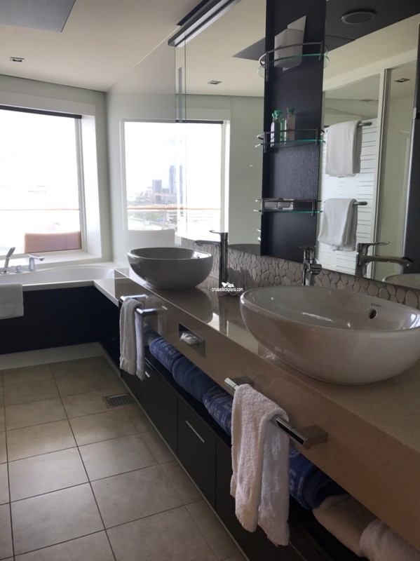 - IMPORTANT NOTE: Category H6 aft suites on decks 11 and 14 have large window in bathroom overlooking aft balcony. Category H6 aft suites on decks 9, 10, 12, 13 and 15 have bedroom overlooking aft balcony.