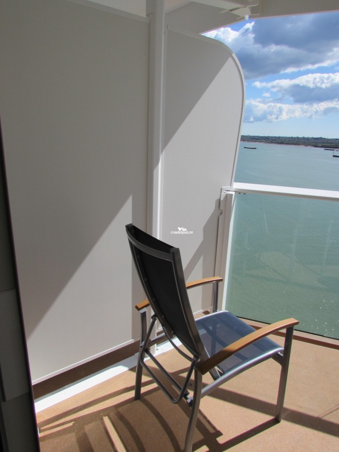 2C (was D1) balconies range from 55 to 119 square feet. Cabins 6254, 6258, 6654, 6658, 7254, 7258, 7654, 7658 have a chair instead of sofa and are 177 square feet with 82 square feet balconies. Category 1E and 2E (was DO) and 2F (was SB) is obstructed by view of top of lifeboat. Forward category 2E (was DO) on deck 7 and deck 8 is obstructed by steel frame that forms porthole opening. Some cabins have sofa near the balcony and others have bed near the balcony.