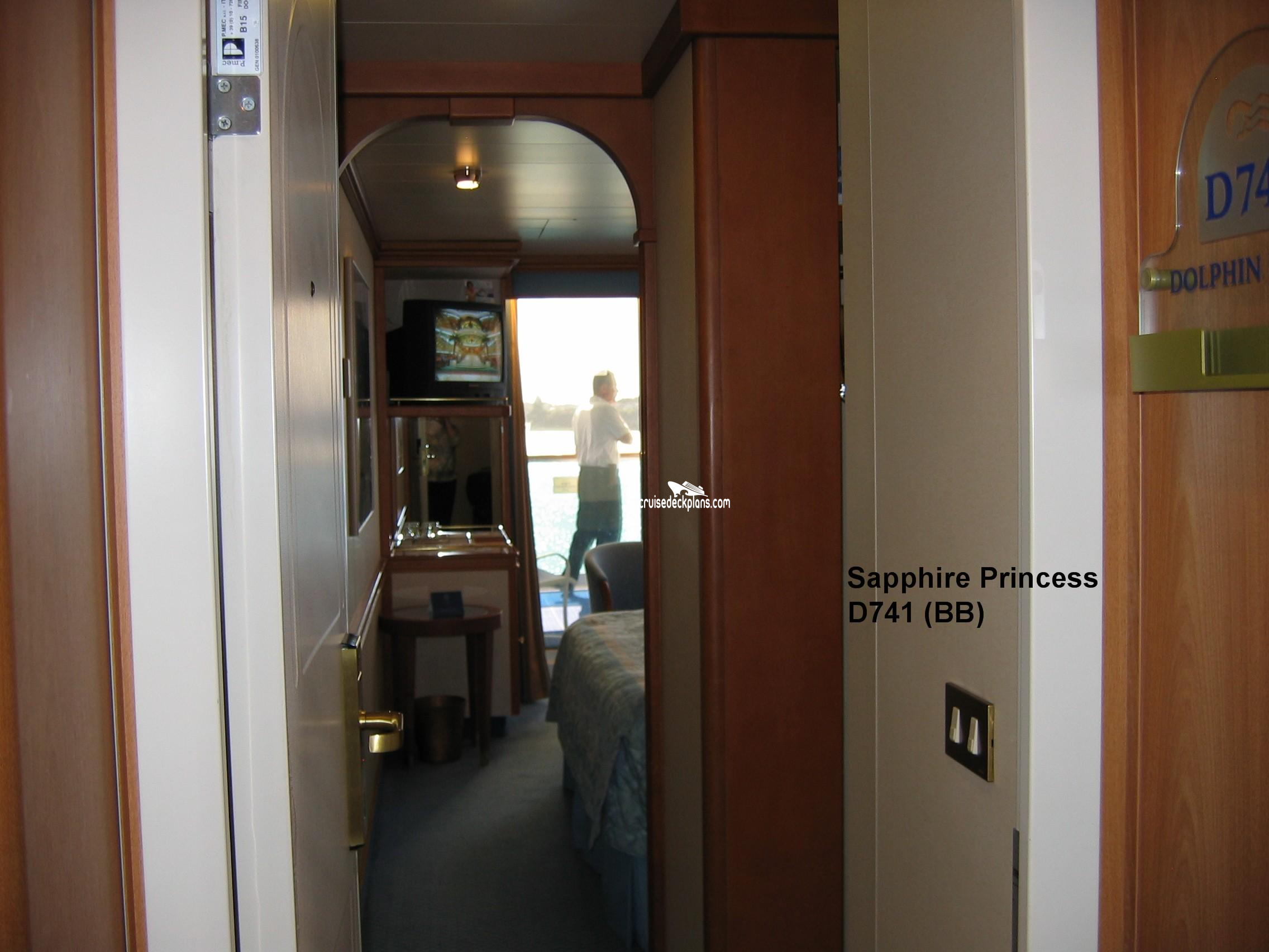 These are some actual stateroom pictures of cabin D741 on the Sapphire Princess. Click on images below for larger image and slide show. The slide show will show the date the picture was uploaded to out website. This date is useful because Sapphire Princess typically will update its cabins every three to five years with new carpeting and decor. We will keep older pictures for you to compare the more recent photos to. The pictures are sorted by the newest ones first. Most of our cabin pictures are contributed by actual cruisers. We pay 50 cents for any that we use. You can upload your cabin photos HERE. Afer you are done looking at these photos and/or the videos below you can click here to select another cabin.